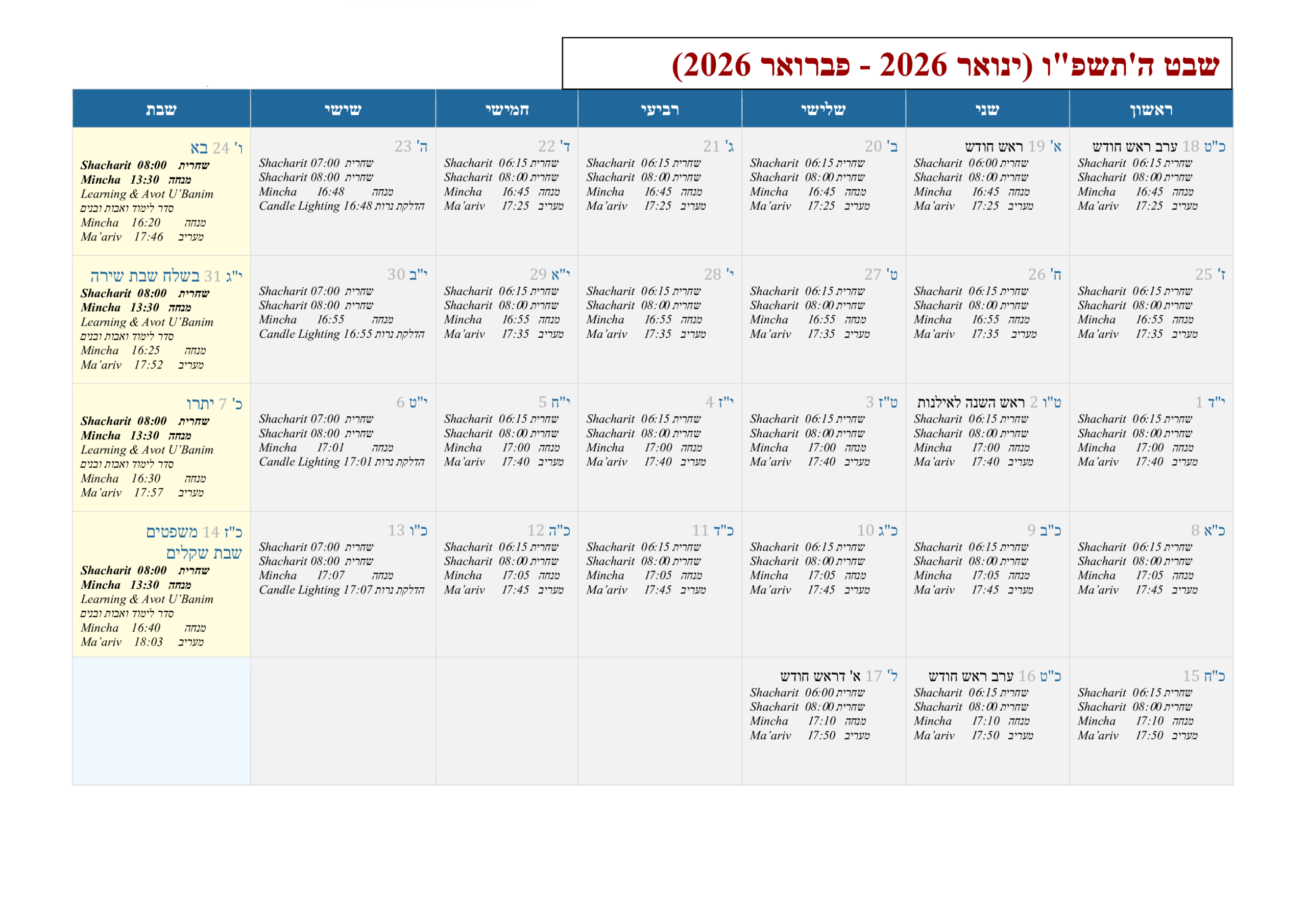 זמני תפילה